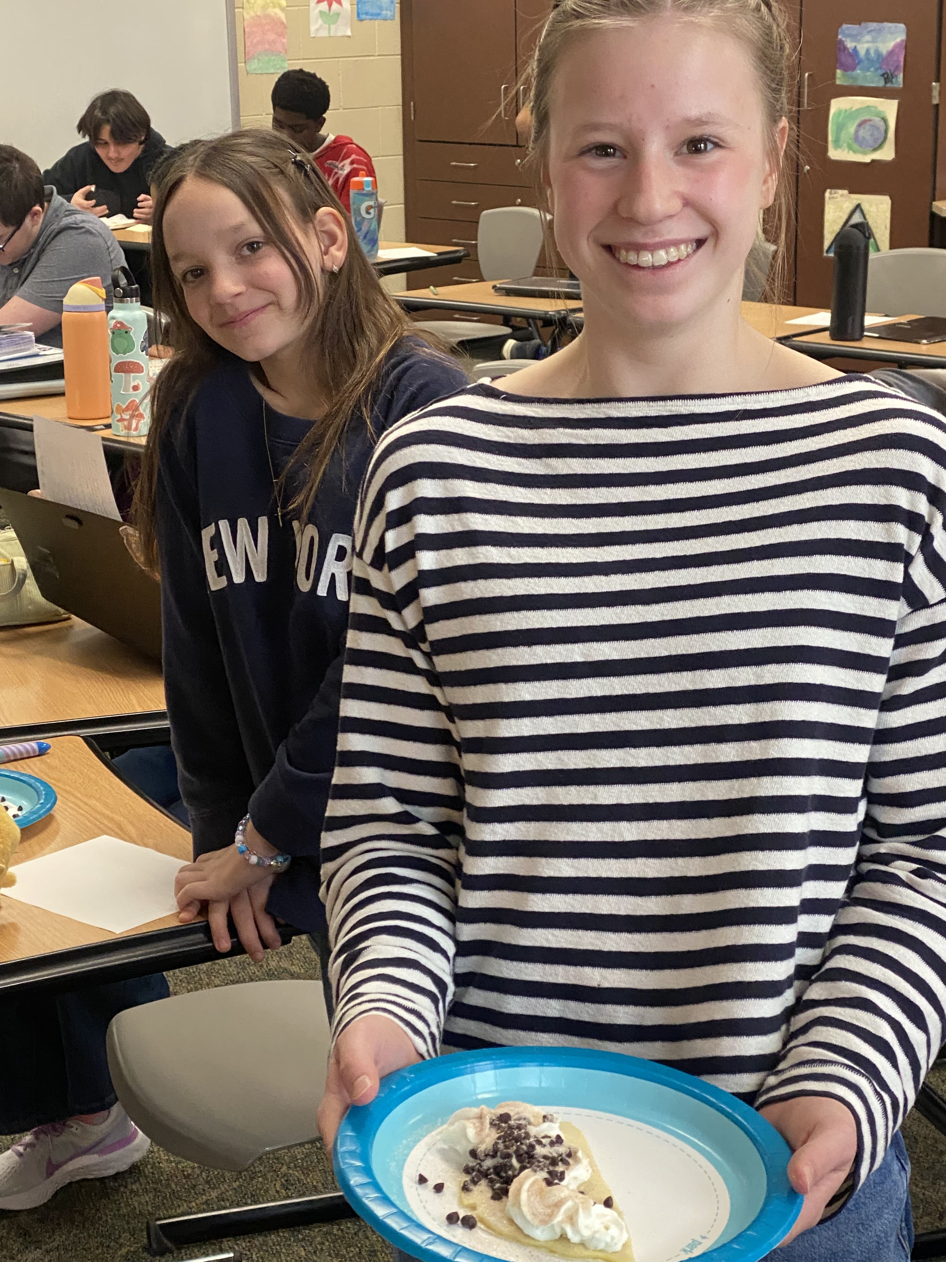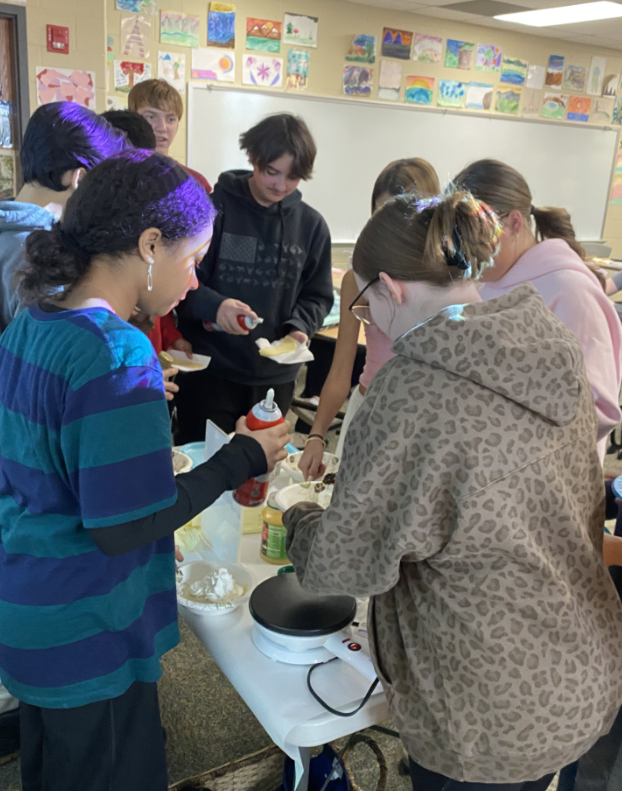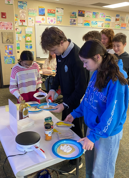 As part of their current unit on celebrations and festivals, students explored the cultural meaning behind the tradition before enjoying their own sweet crêpes topped with honey, chocolate chips, whipped cream, applesauce, and cinnamon sugar. Experiences like this bring language learning to life by connecting classroom instruction with real-world cultural traditions.