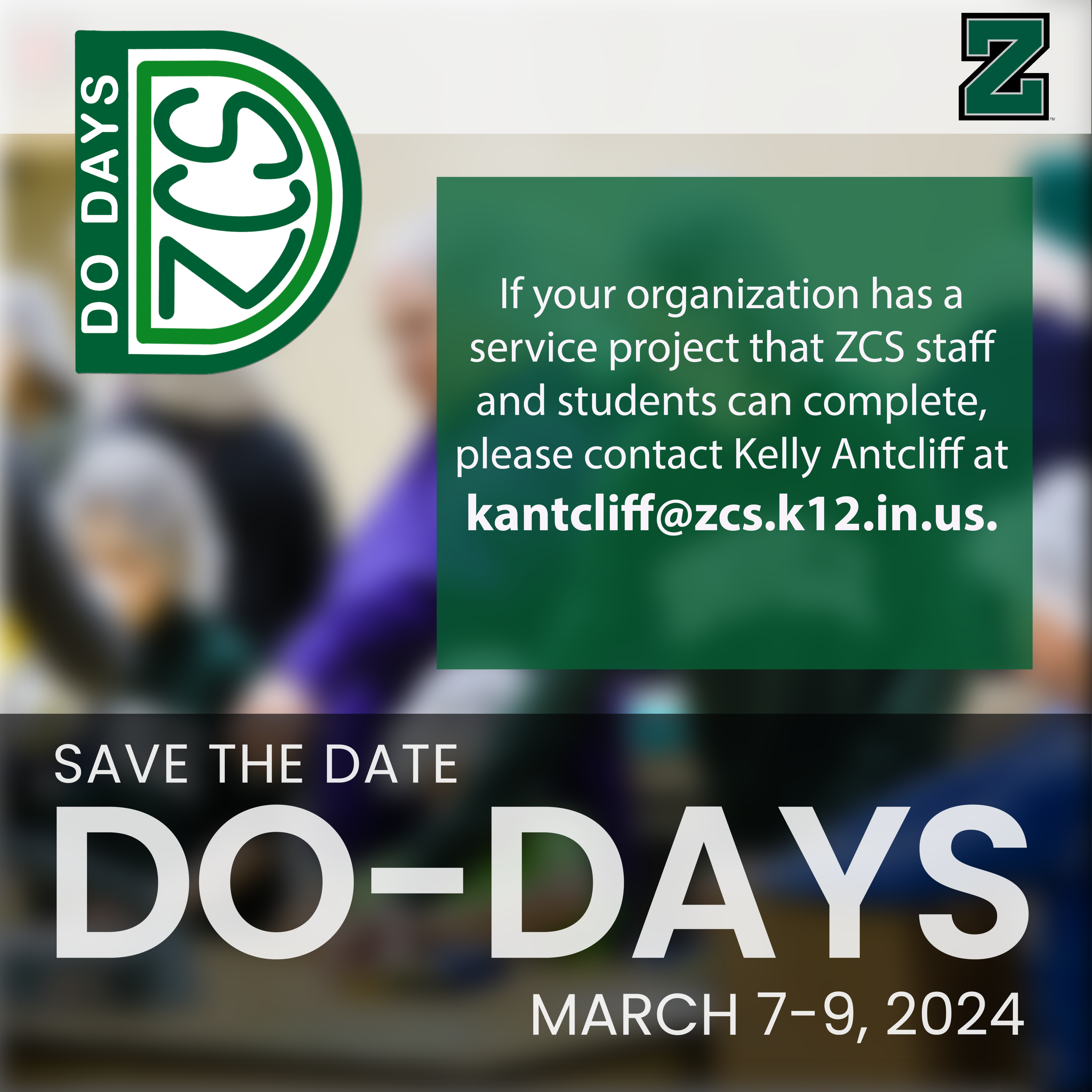 Mark your calendars for the seventh annual ZCS Do-Days, taking place from March 7th to March 9th, 2024. Students and staff district-wide will be actively engaged in various service projects.