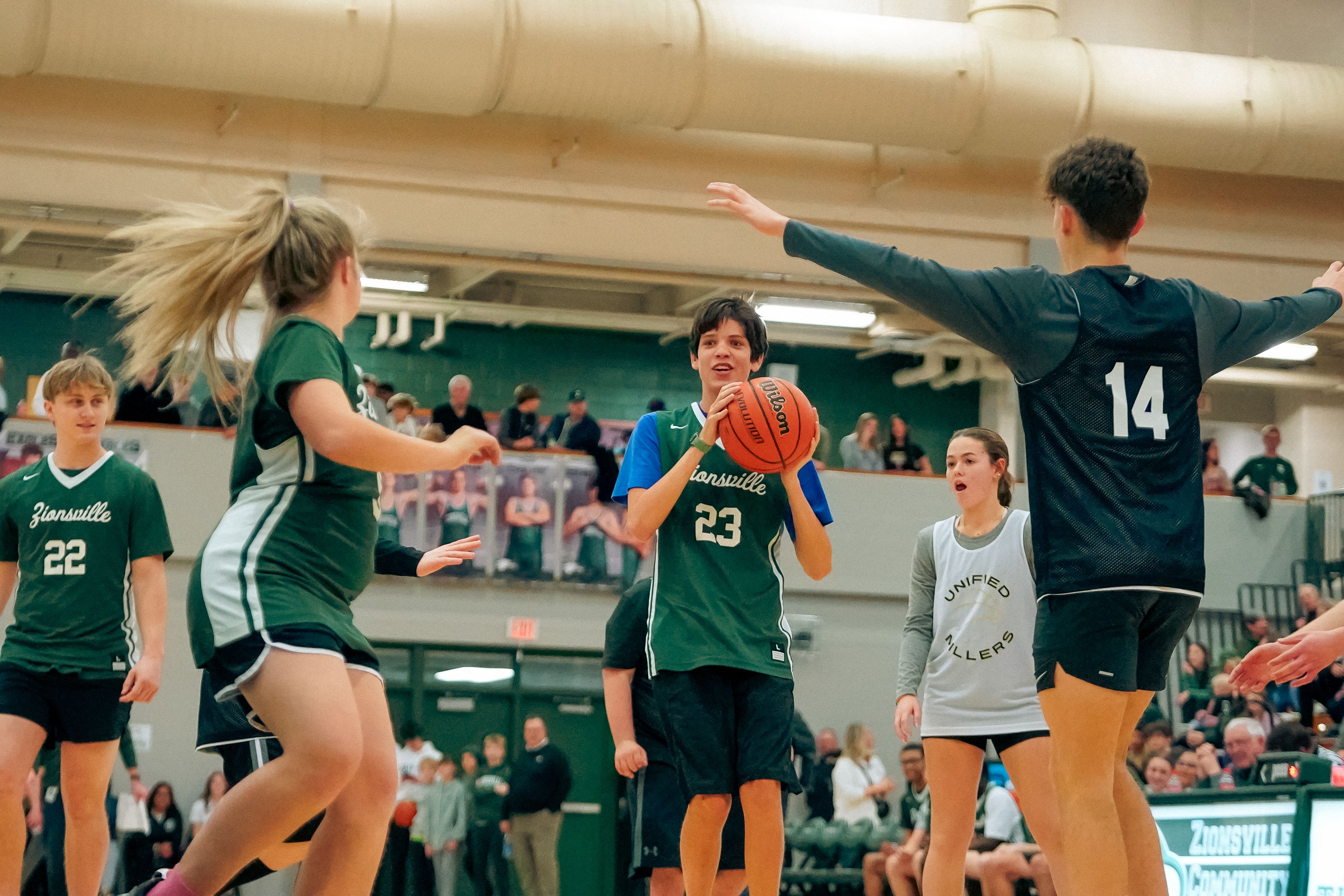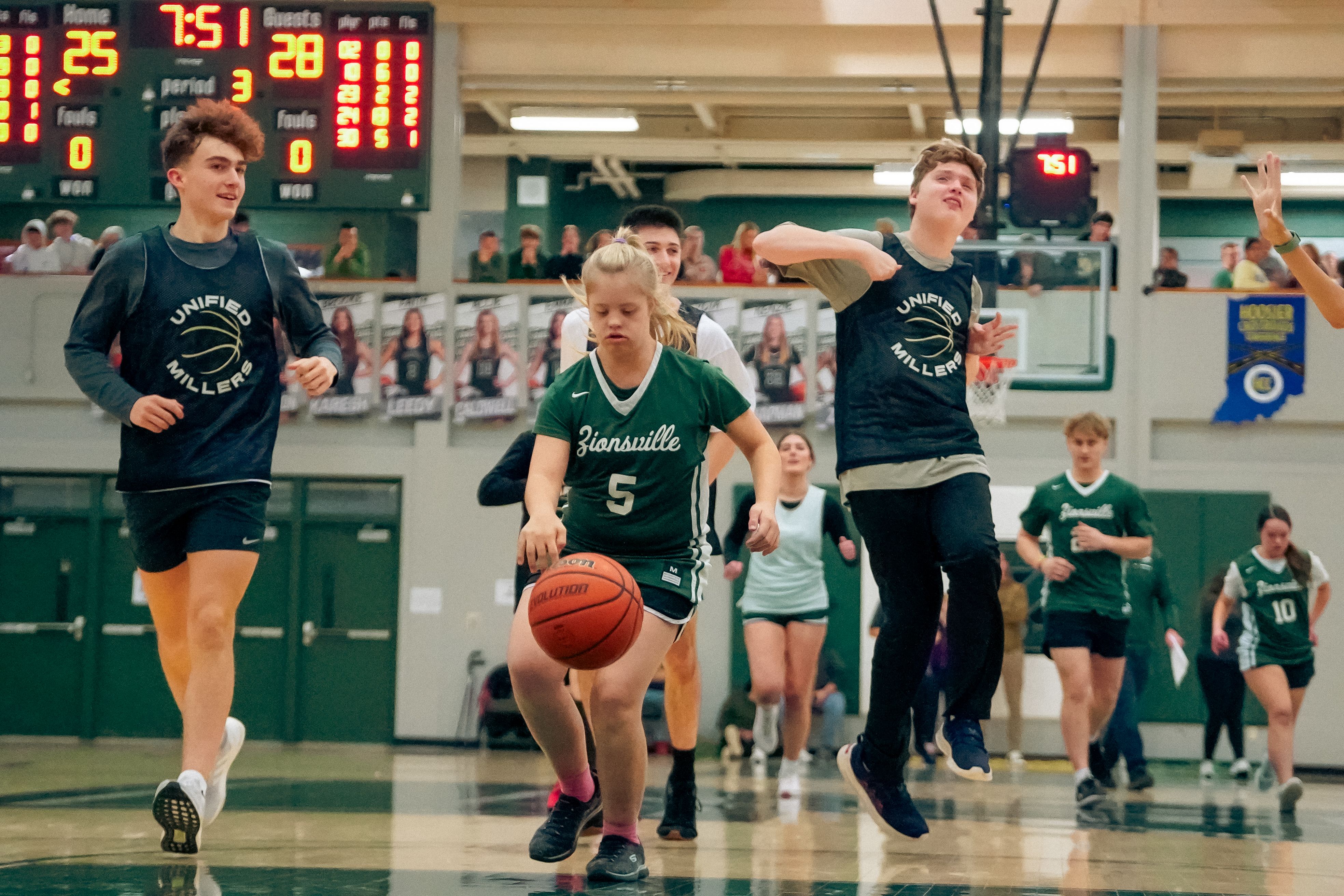 Last weekend, the Zionsville Community High School Unified Basketball team hit the court at halftime of the Friday night ZCHS basketball game, showcasing their skills and sportsmanship.