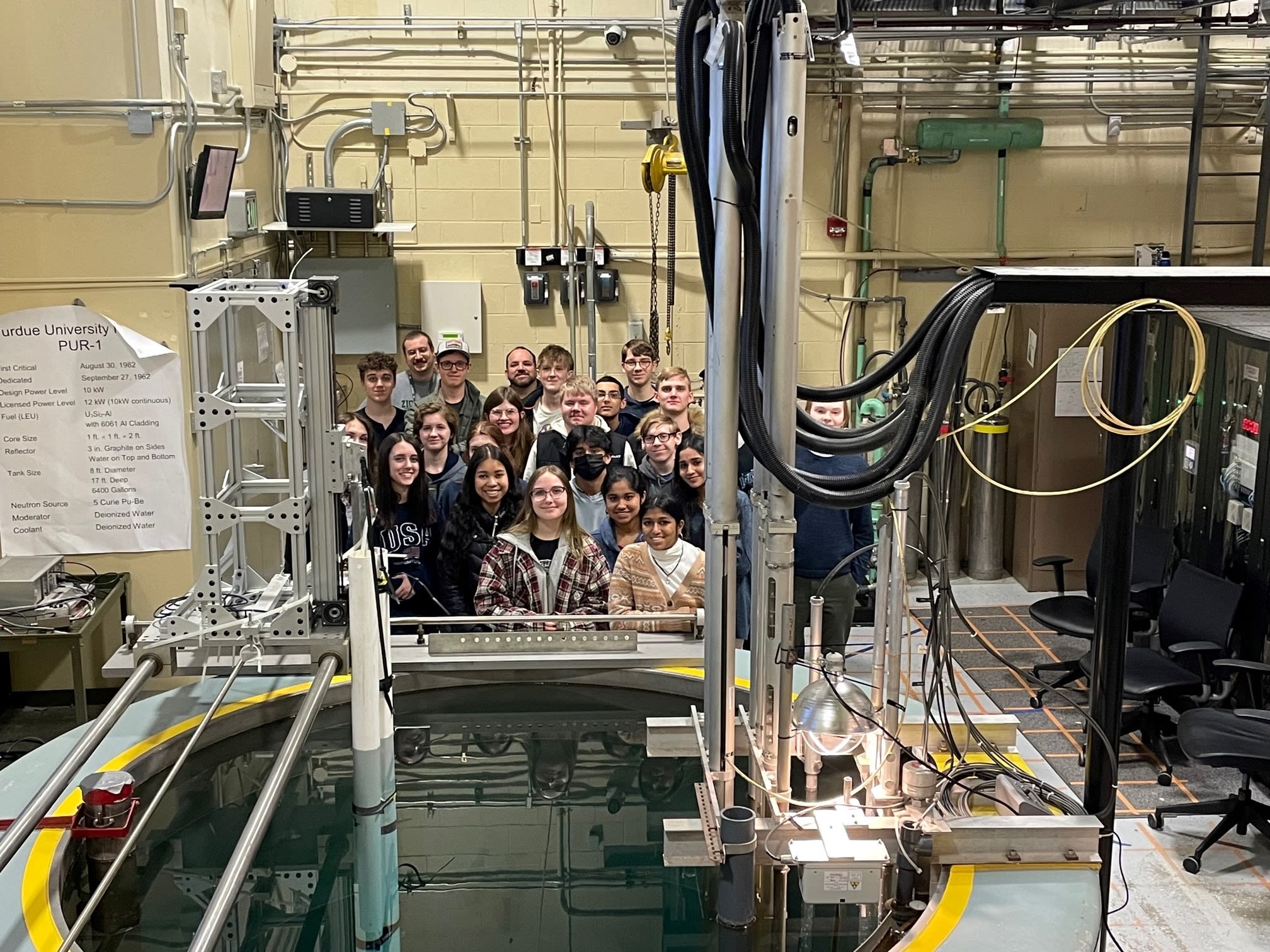 Twenty-two students and two teachers visiting the Purdue Nuclear Reactor