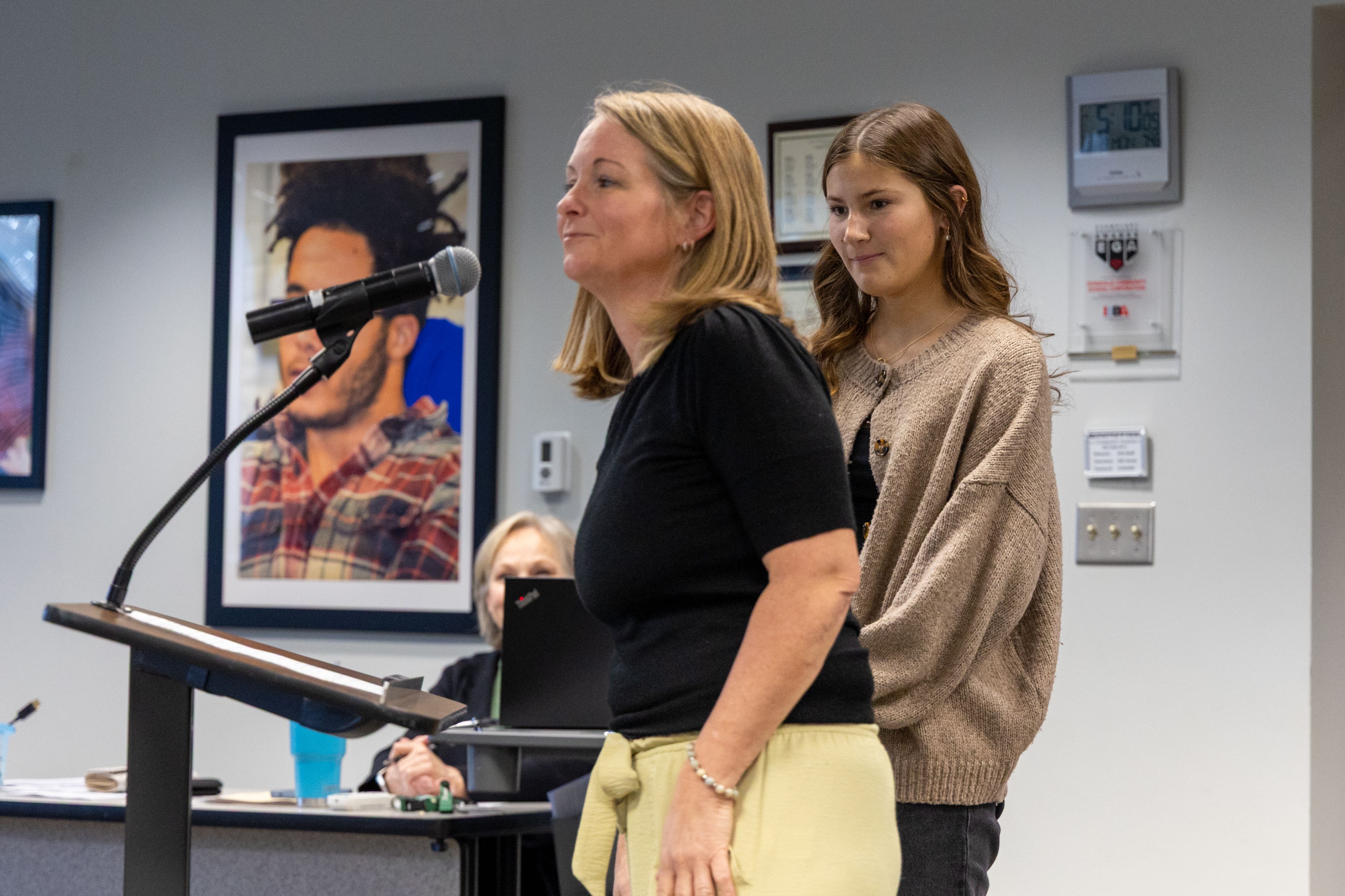 Superintendent Rebecca Coffman opened the meeting by recognizing Zionsville Community High School journalism educator Lauren Wagner, who was named the 2026 Ella Sengenberger Adviser of the Year.