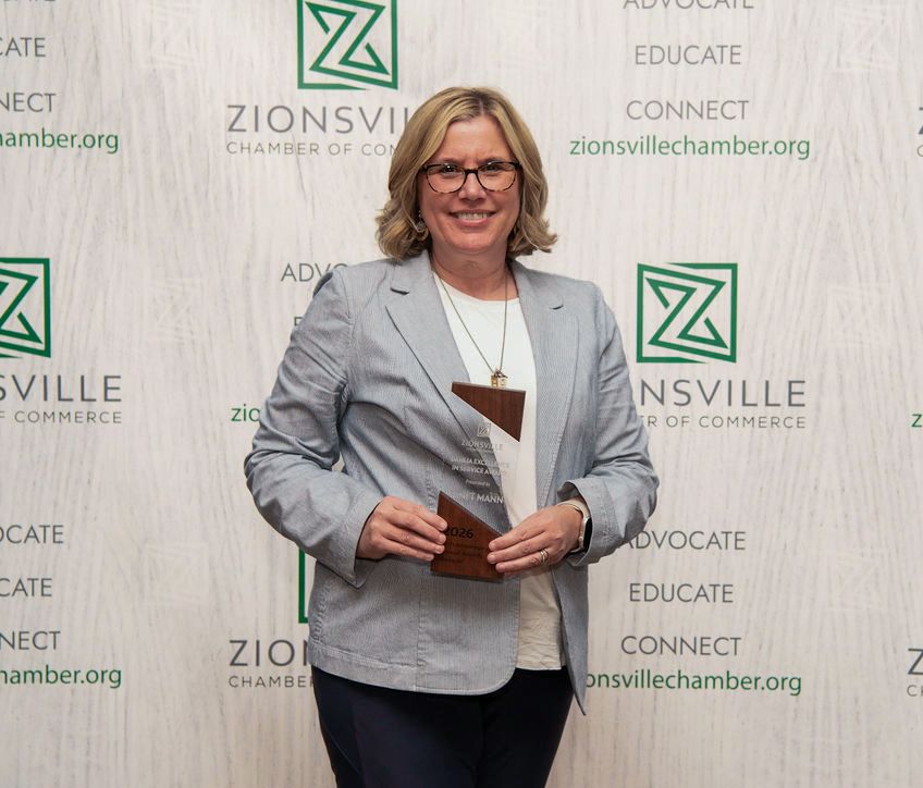 The award honors individuals who exemplify excellence and service within a Zionsville organization or business. District leaders highlighted Mann’s work sharing the stories of students, educators, and the community through the district’s communications efforts.
