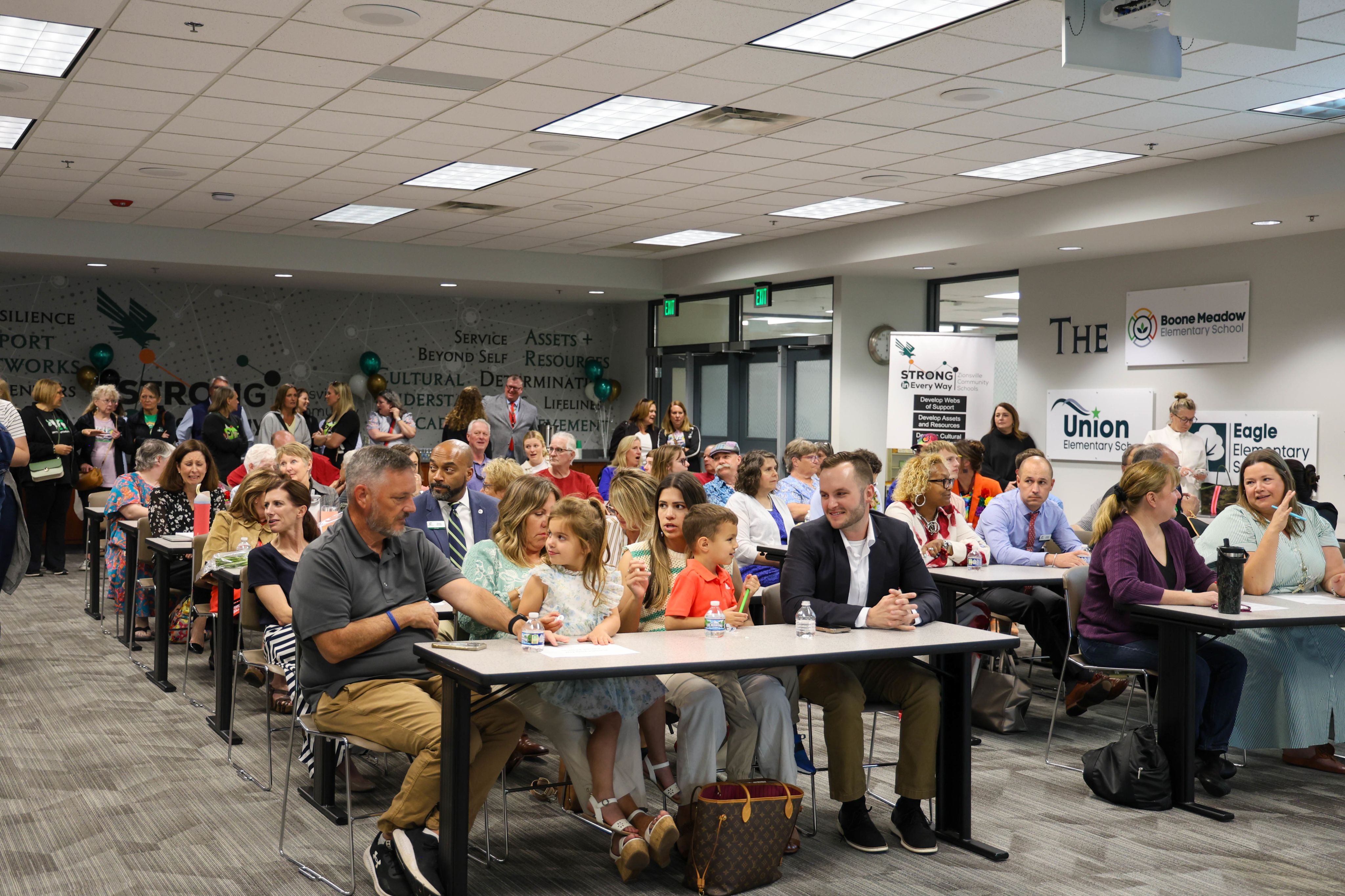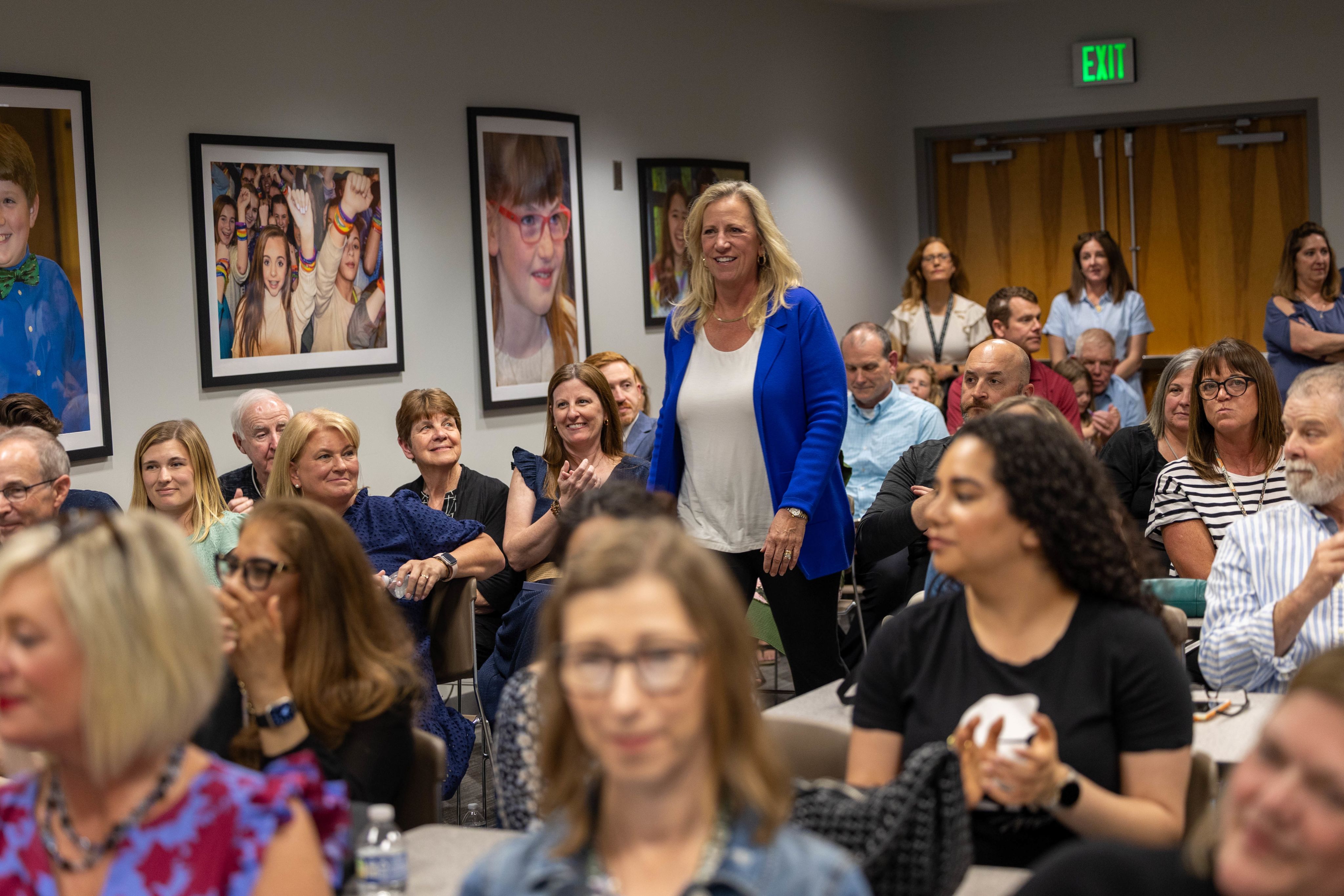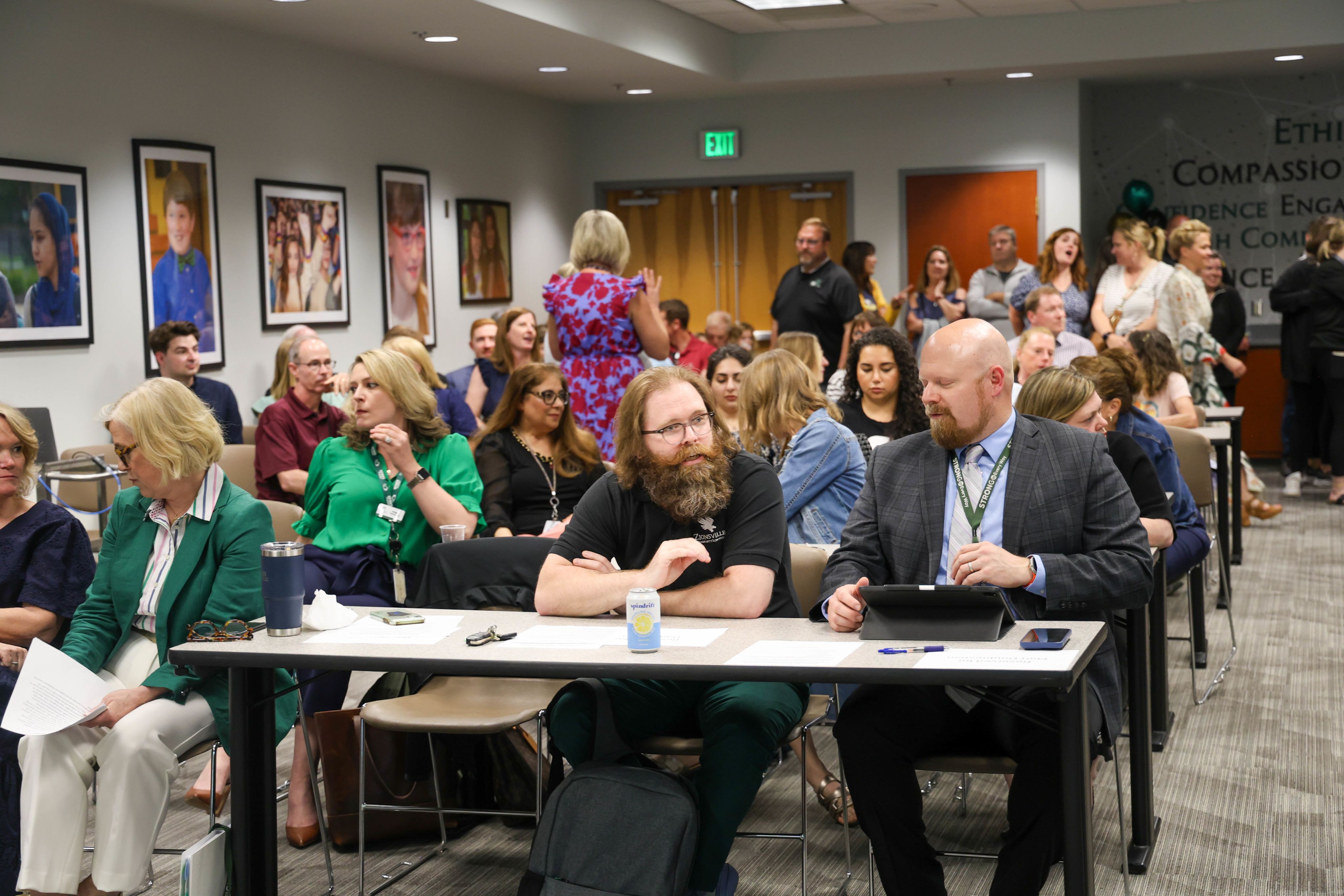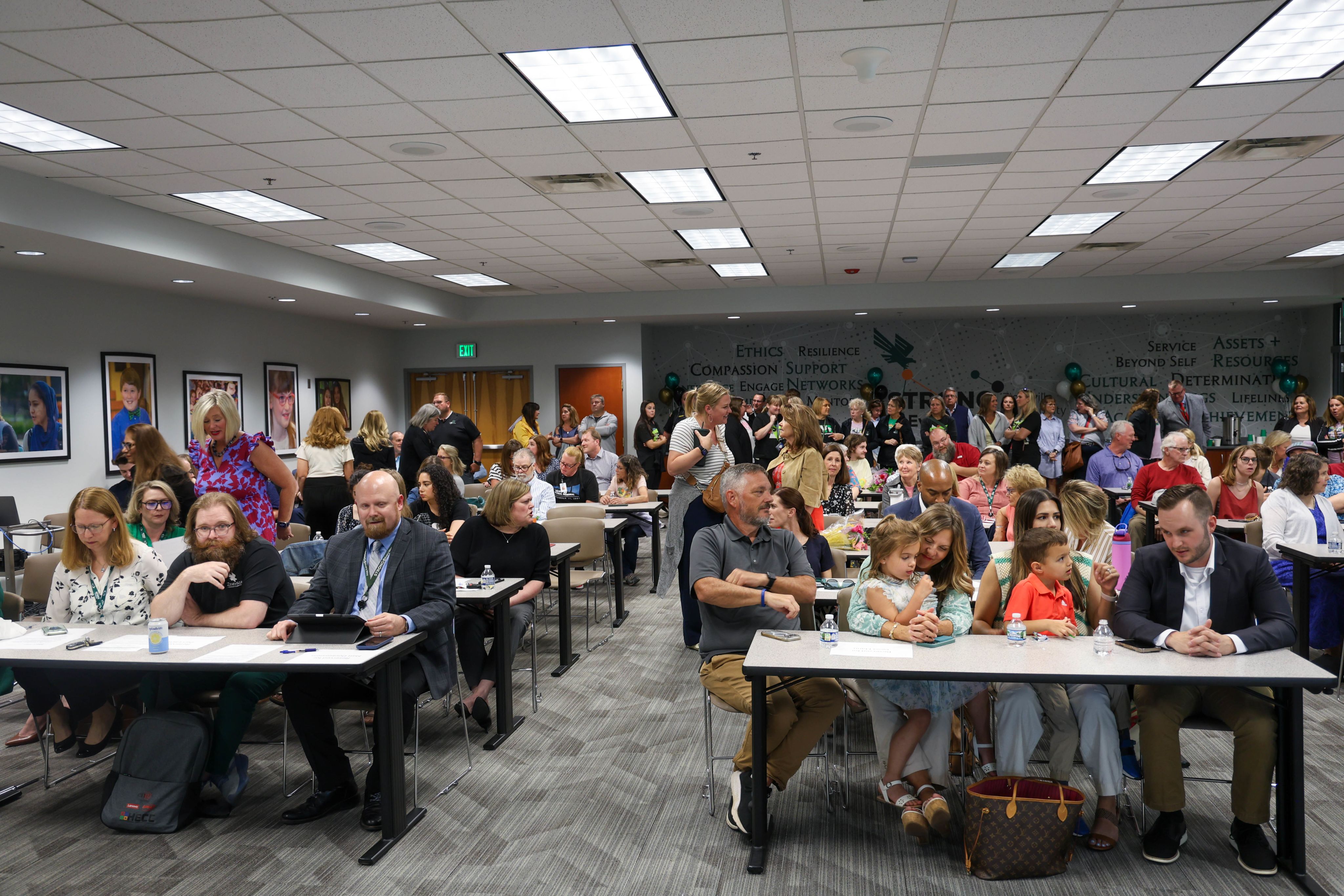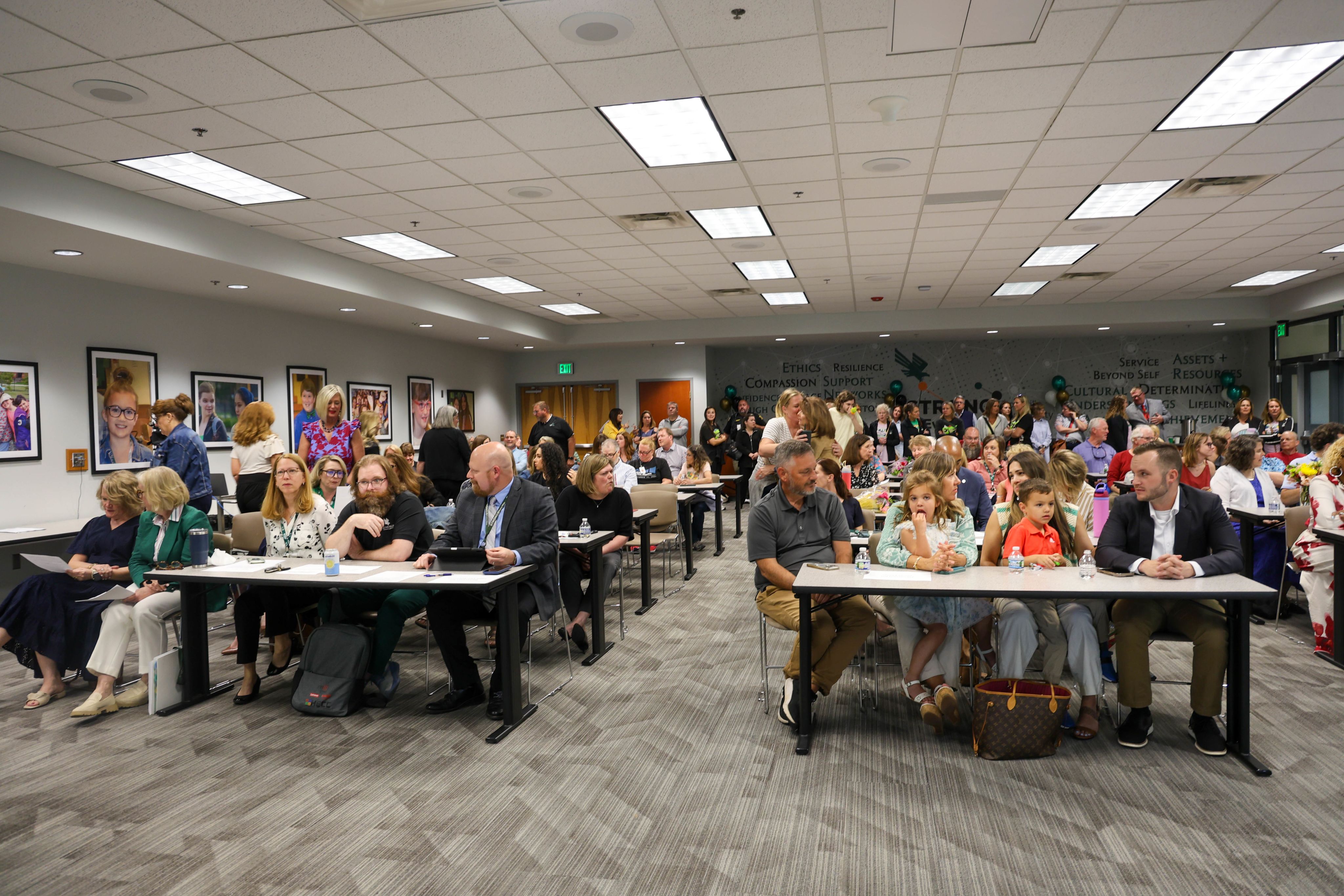 A packed board room for a night of celebration