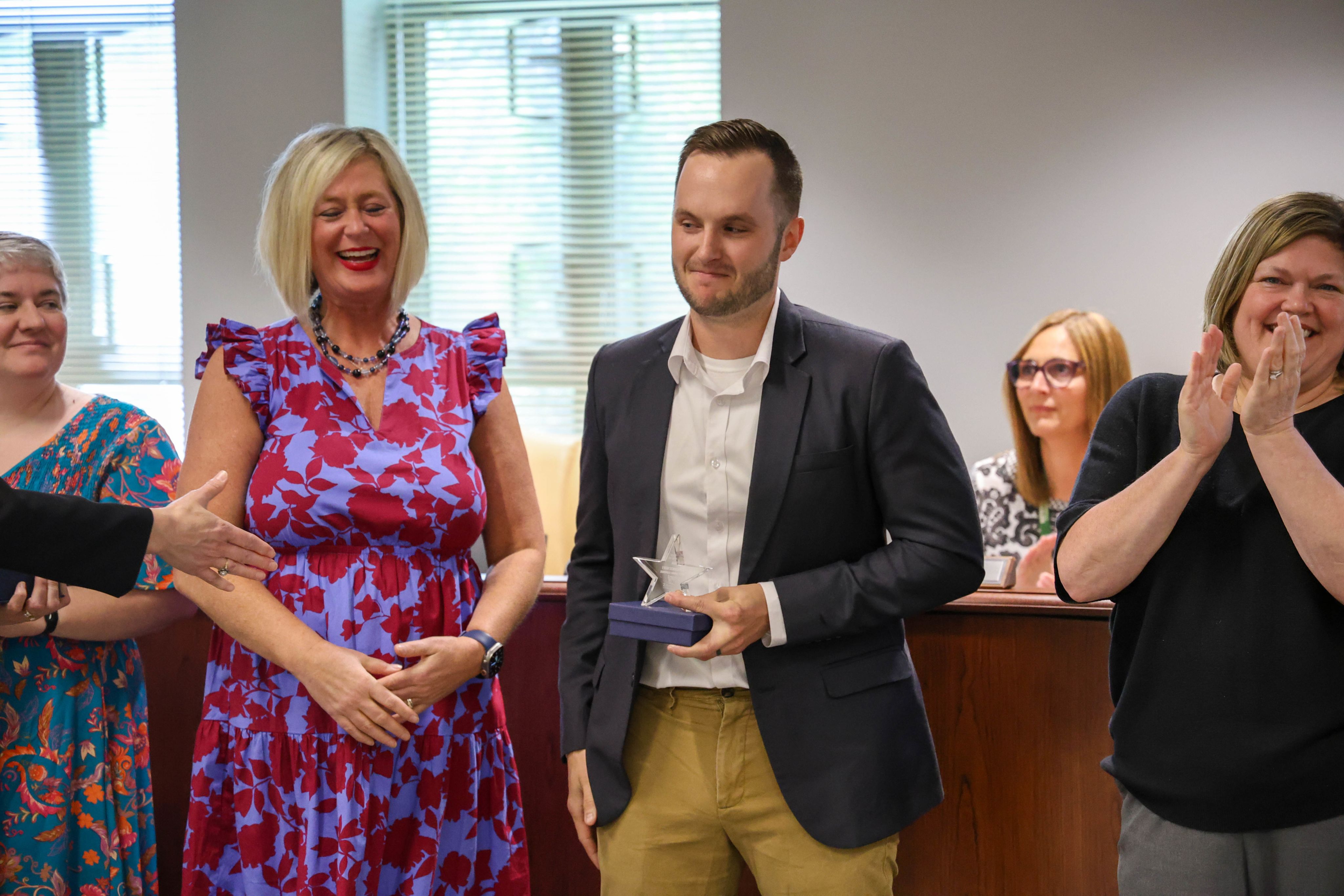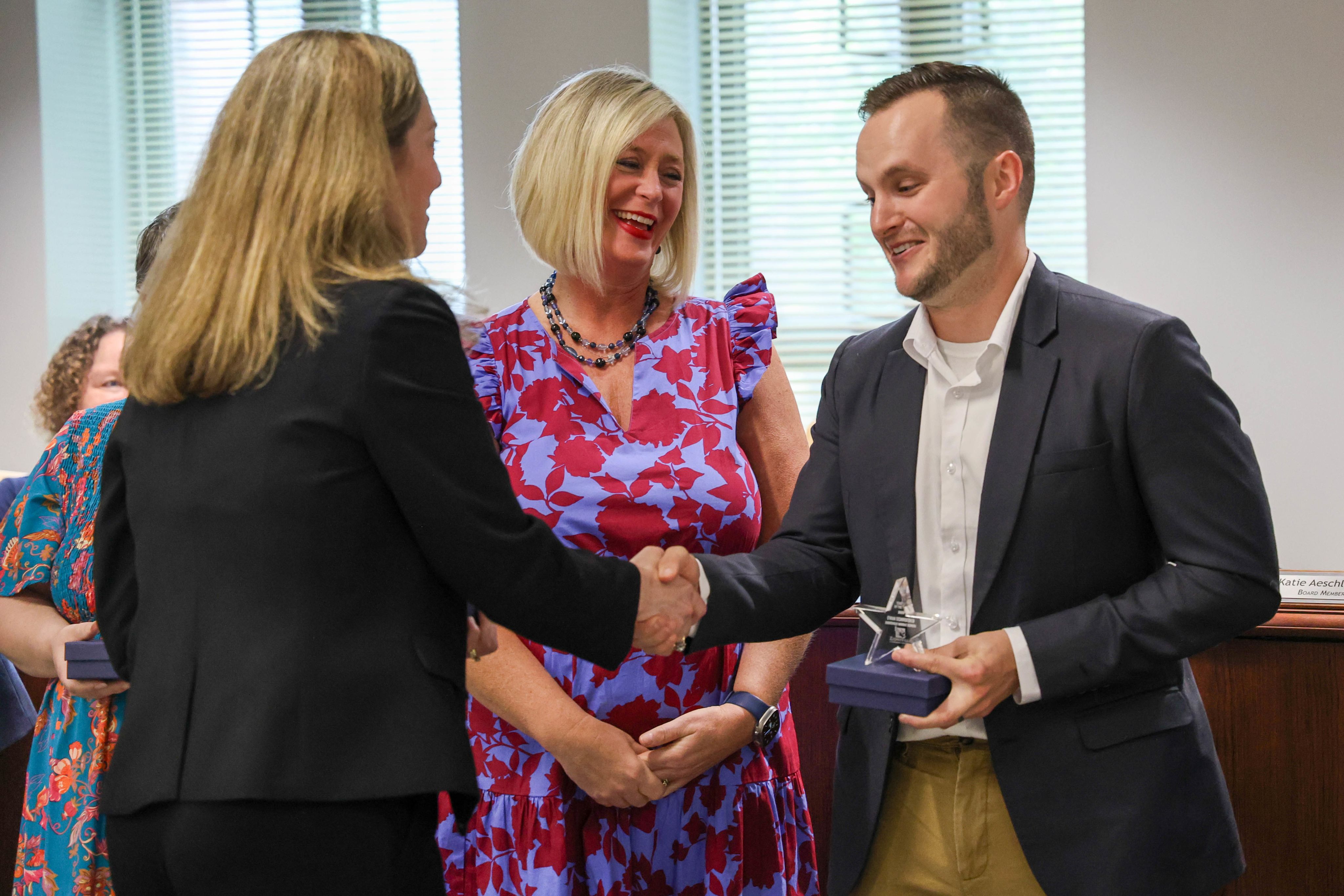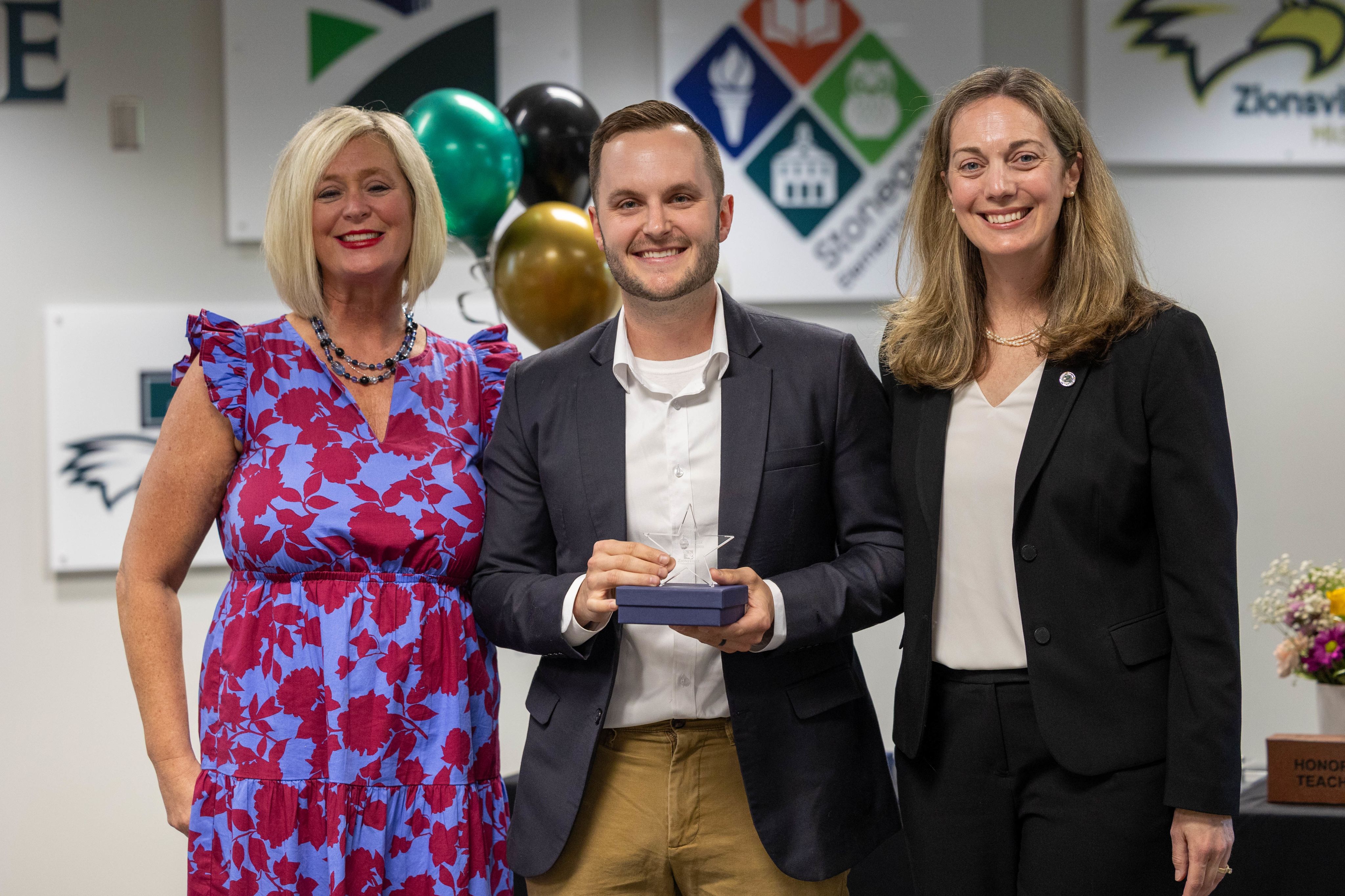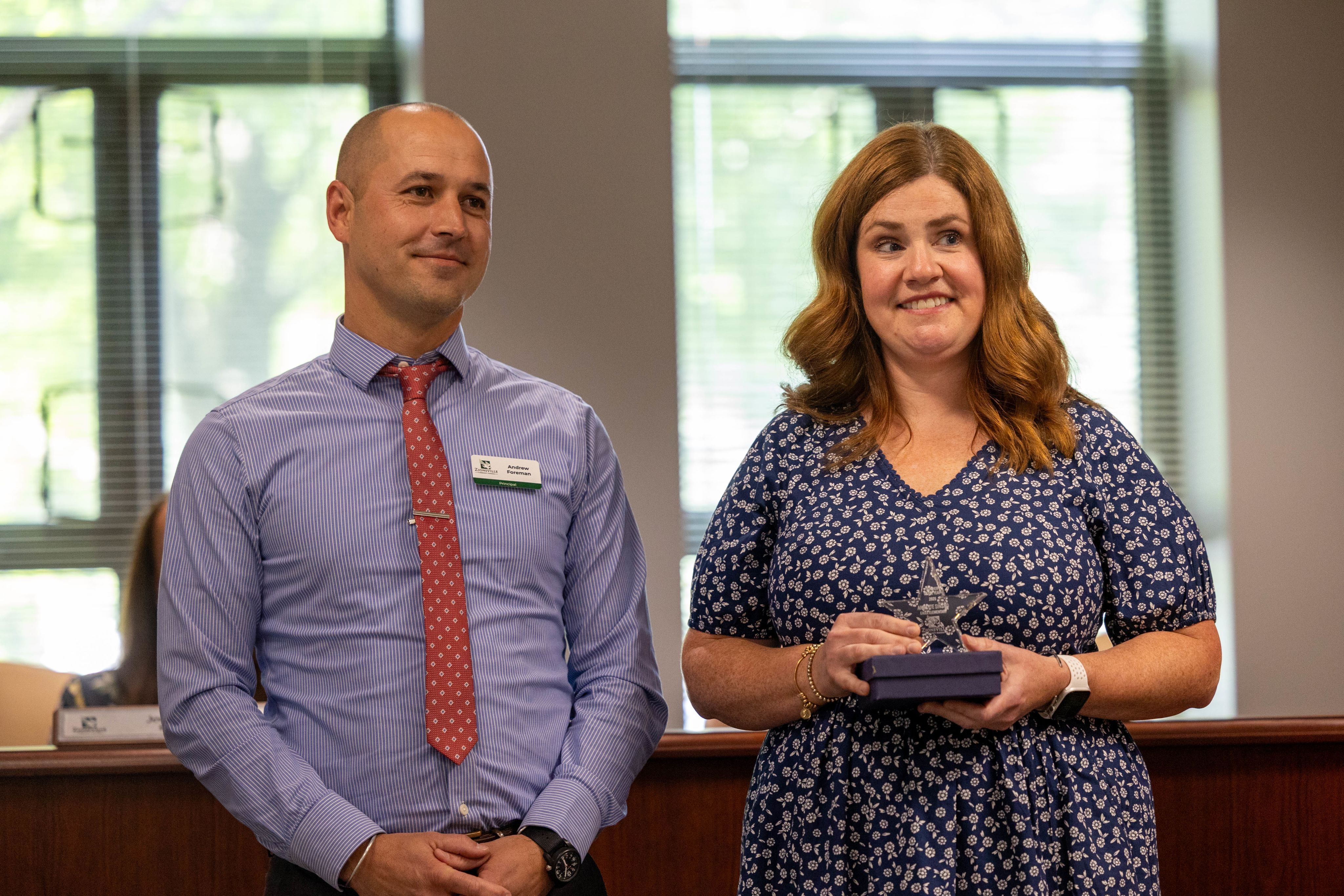 During the May Board of School Trustees meeting, Zionsville Community Schools celebrated outstanding educators by recognizing the Teachers of the Year from each school. Among this distinguished group, Zionsville Middle School Teacher Evan Schroeder was named the District Teacher of the Year and will represent ZCS in the state competition.
