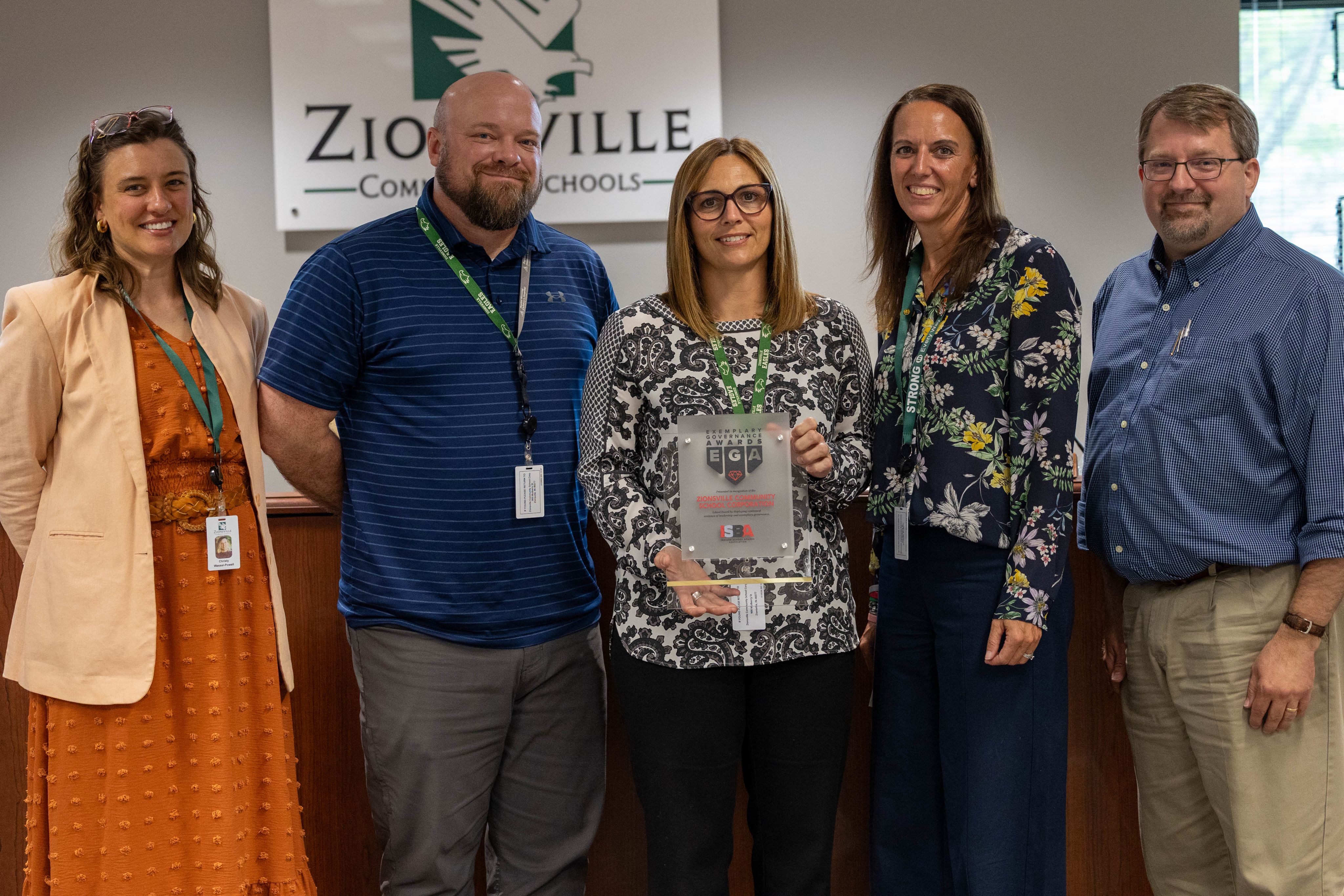 The Zionsville Community Schools Board of School Trustees was awarded the Exemplary Governance Award by the Indiana School Boards Association
