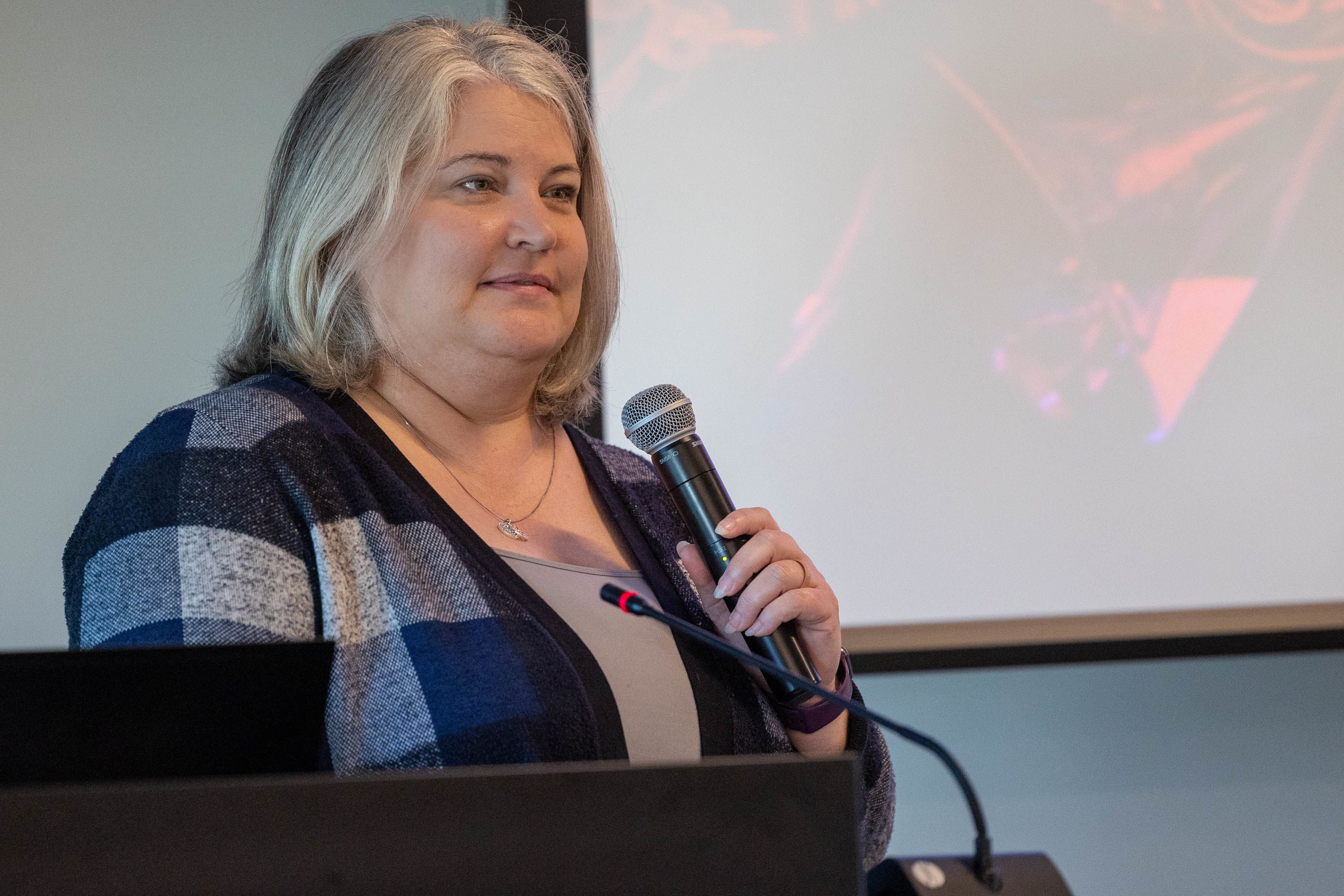 Dr. Rebecca Coffman recognized Eagle Elementary School Teacher Alyssa Jackson for being named the 2023 INSHAPE Elementary Teacher of the Year.