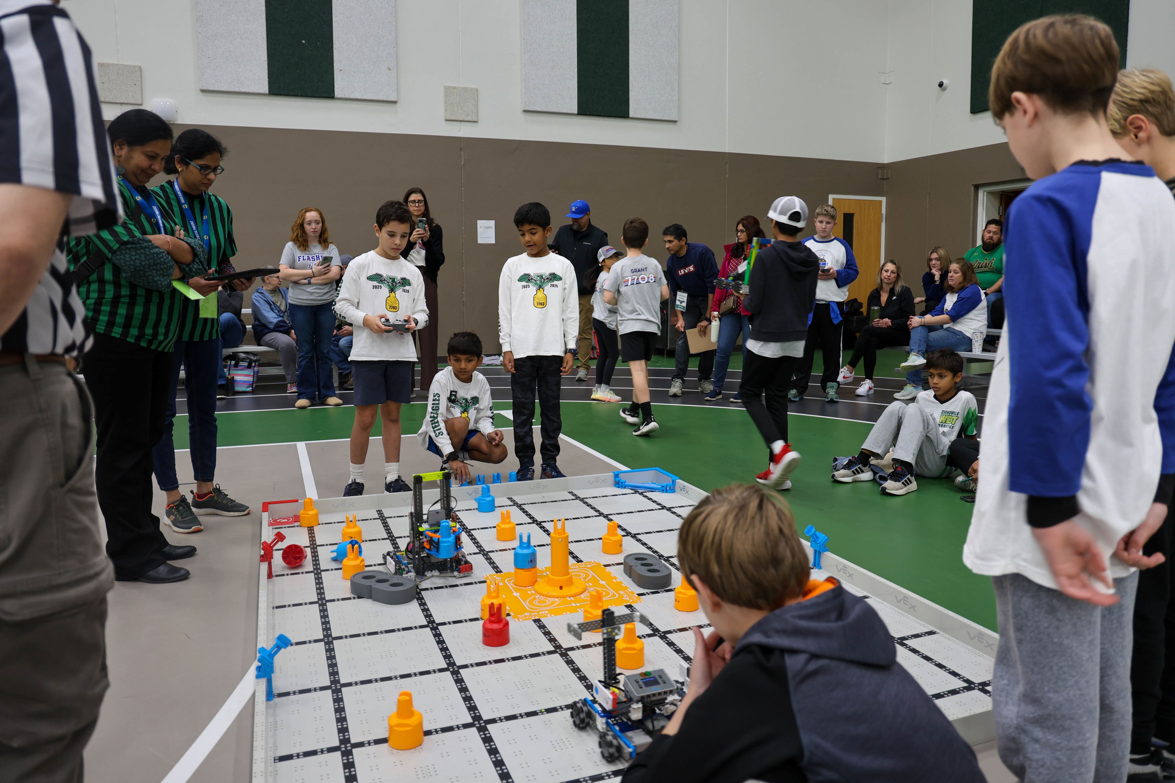 This weekend, Zionsville Community High School was filled with excitement as robotics teams from elementary through high school came together for an all-day tournament. Students impressed audiences with creative builds, sharp problem-solving, and strong teamwork. The event was a celebration of curiosity, innovation, and the growing strength of the robotics programs across ZCS.